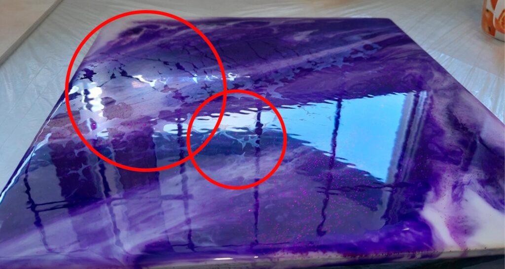Kratery, nierówna powierzchnia po wyschnięciu żywicy