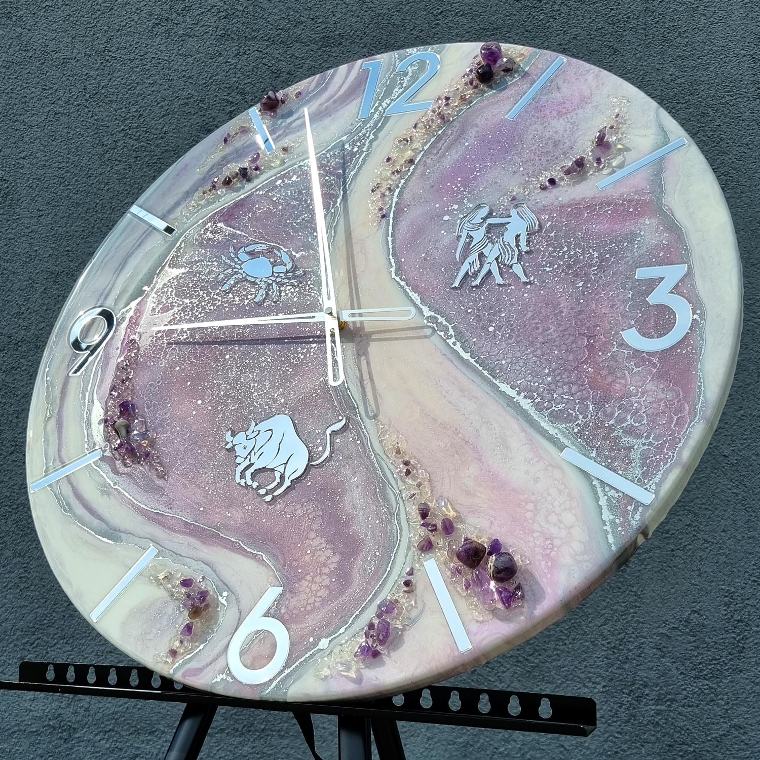 zegar z żywicy Ametyst jasno fioletowy wrzosowy lawenda znaki zodiaku
