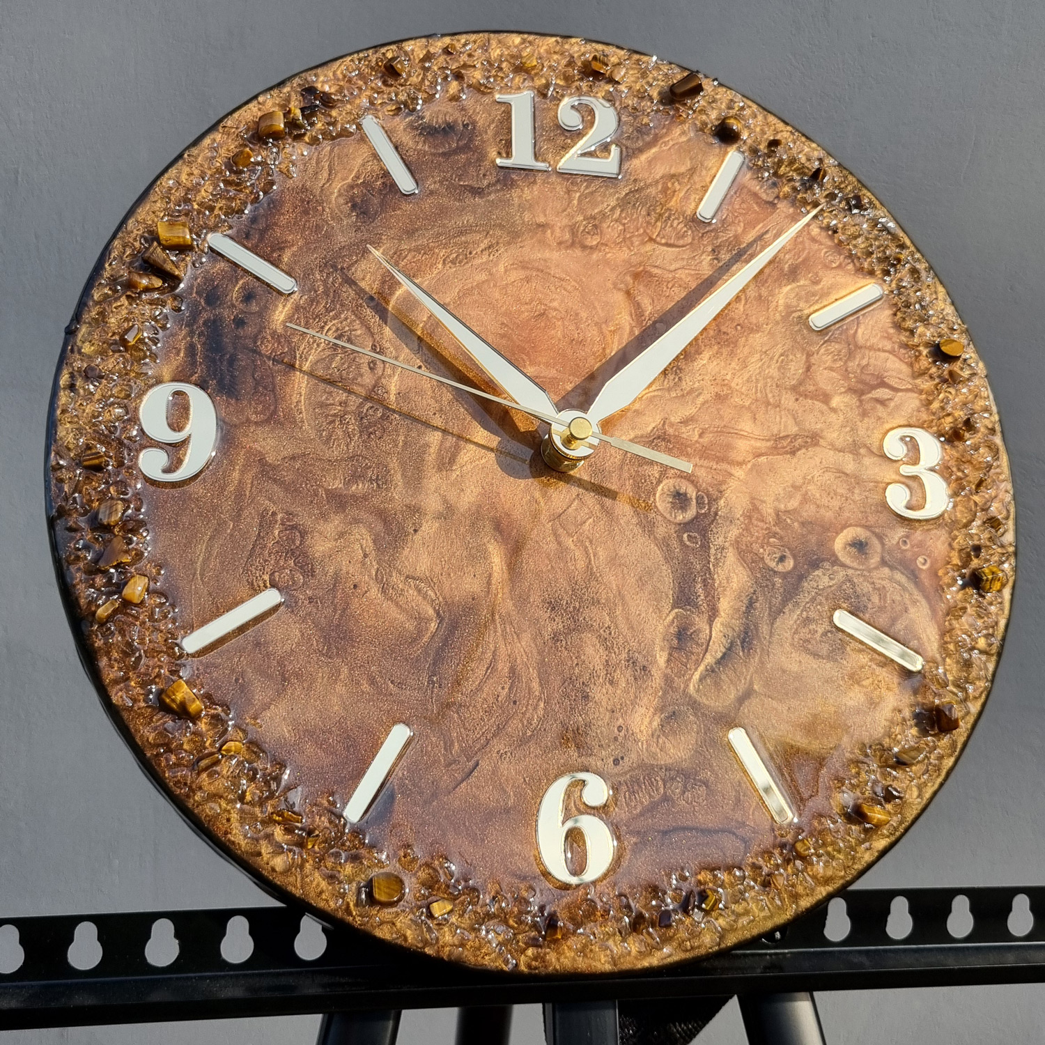 zegar z żywicy brązowy złoty 30 cm