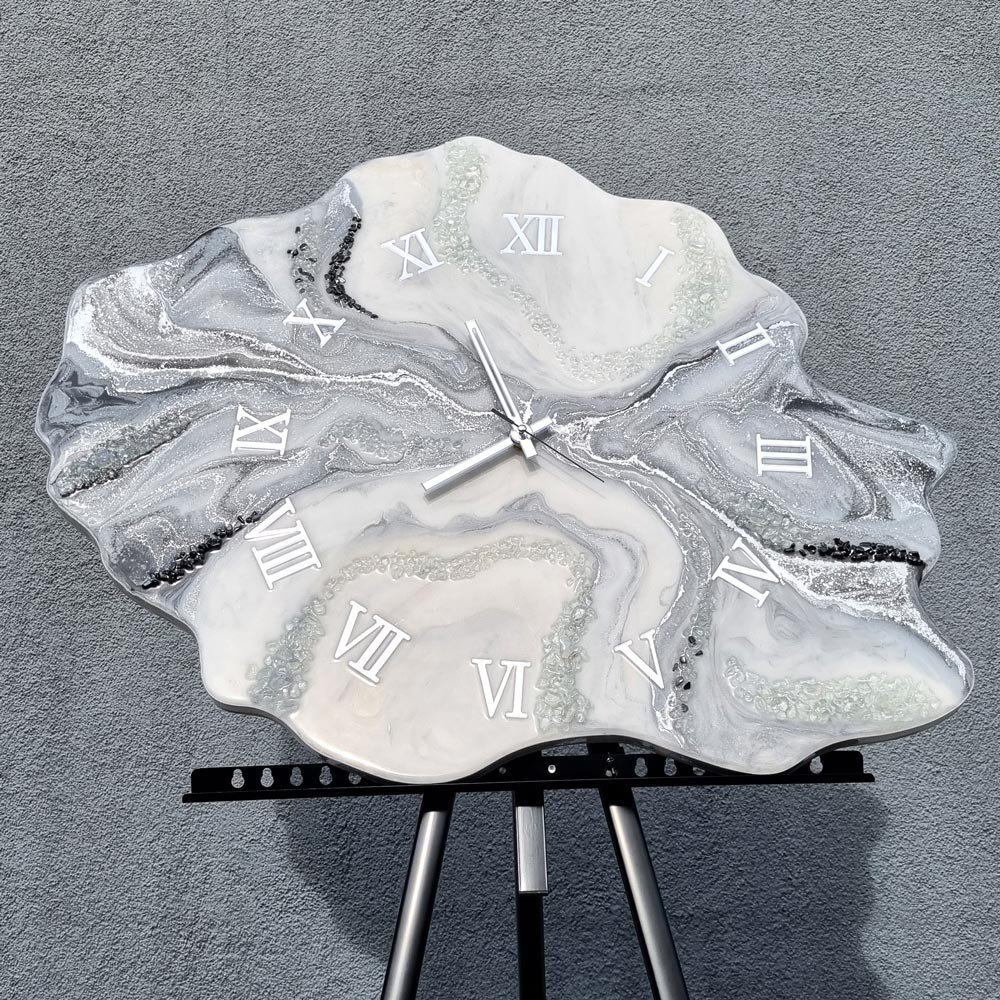Zegar ścienny „Srebrna Geoda” z żywicy.