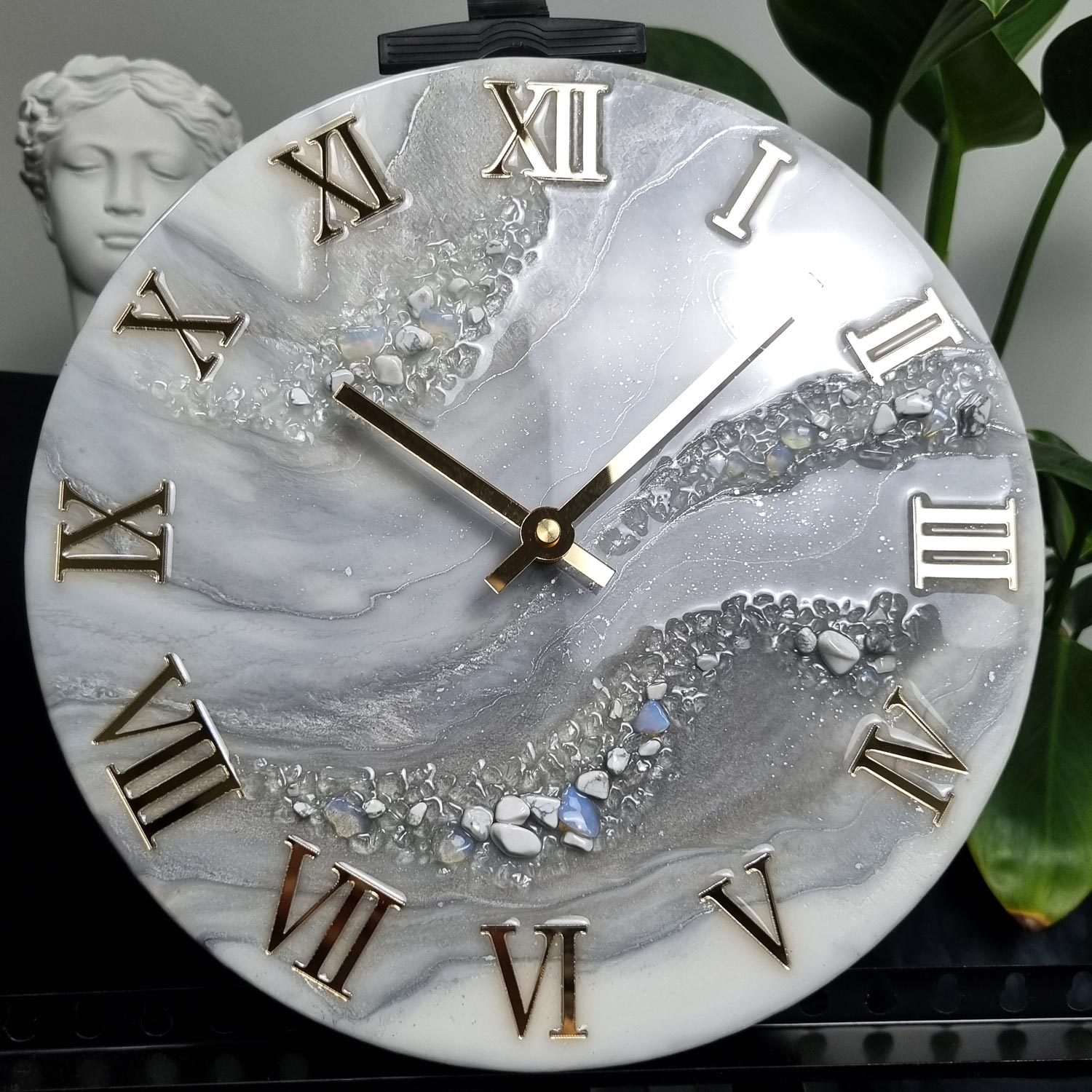 Zegar ścienny „Szlachetna Równowaga” to prawdziwa biżuteria dla Twojej ściany – wykonany z żywicy epoksydowej, zachwyca szlachetną kolorystyką i bogatymi detalami.